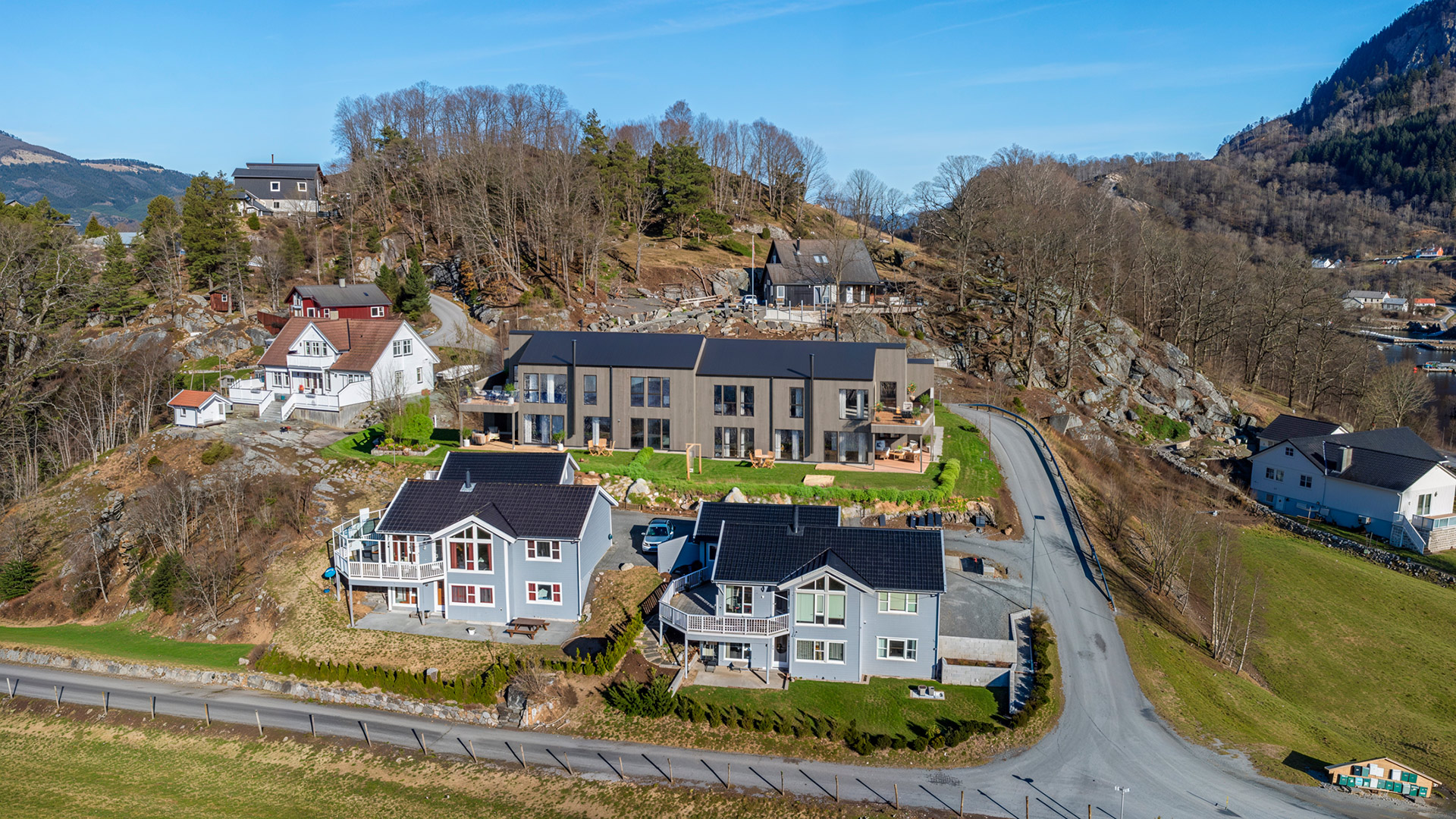 På Fisterhammaren kommer et moderne leilighetsbygg med fire lettstelte og innholdsrike leiligheter. Prosjektet har helhetlige løsninger, solide materialvalg og gode planløsninger – tilpasset både landskapet og moderne bokrav.