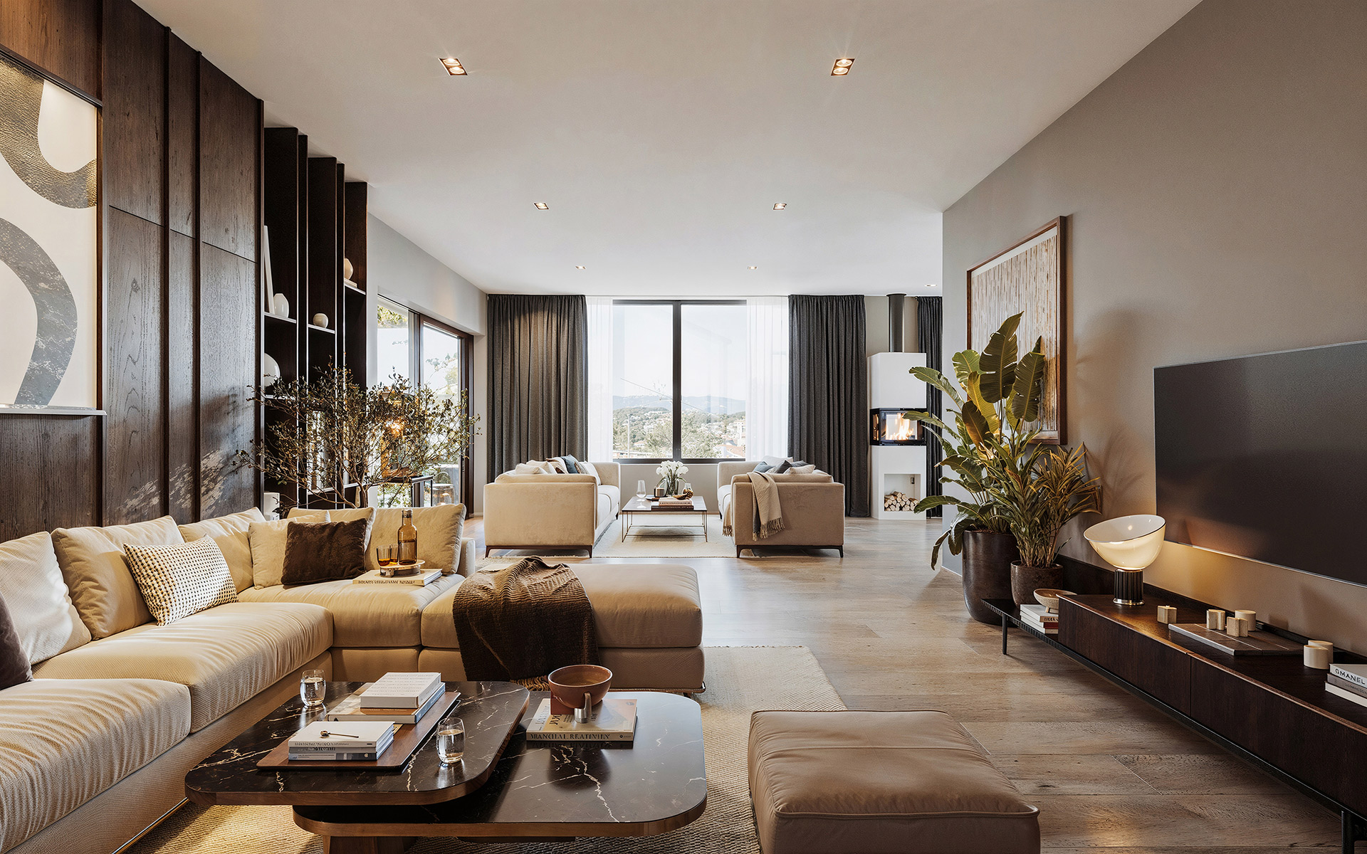 Velkommen til en ny, moderne og gjennomtenkt familiebolig i Fullhammersvingen 9. Her får du praktiske løsninger som favner hele familien. I første etasje ligger tre gode soverom, egen tv-stue, bad, vaskerom og teknisk rom — alt lagt til rette for en funksjonell og komfortabel hverdag. I andre etasje – et lyst, åpent oppholdsrom hvor stue og kjøkken flyter i ett, med store vindusflater og utgang til en romslig terrasse med pergola og glassrekkverk. Her kan du nyte utsikt, lys og godt med luft. Kjøkkenet er fra Sigdal, og peisovnen er en stilren Nordpeis Praha. Gjennomgående 1-stavs eikeparkett, downlights i alle tørre rom og baderom med store fliser gir et helhetlig og kvalitetsrikt uttrykk.