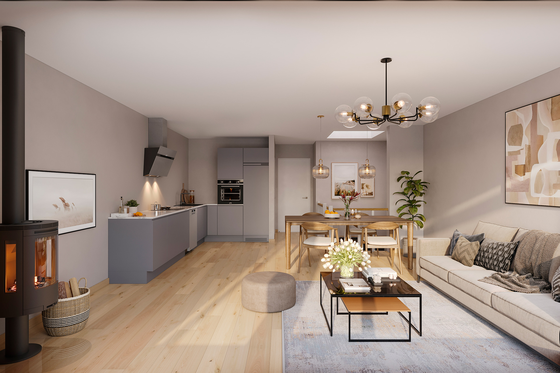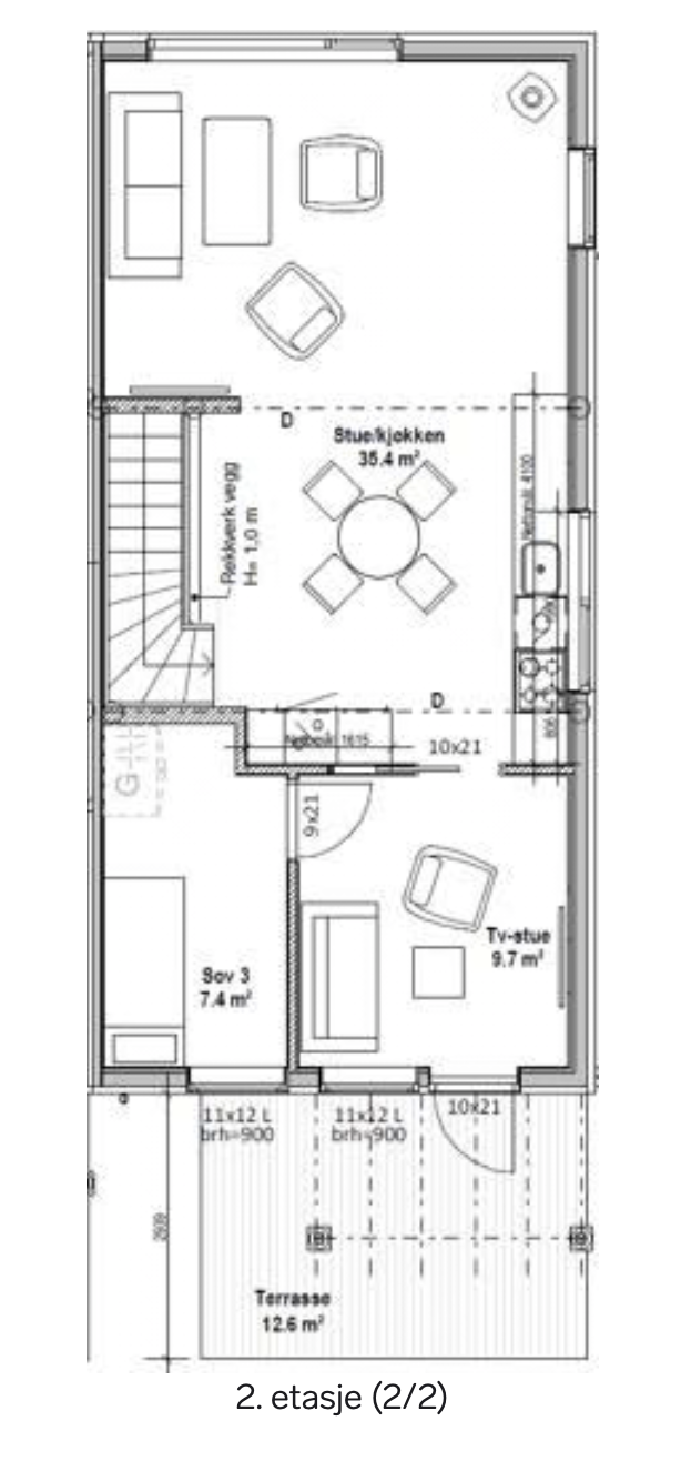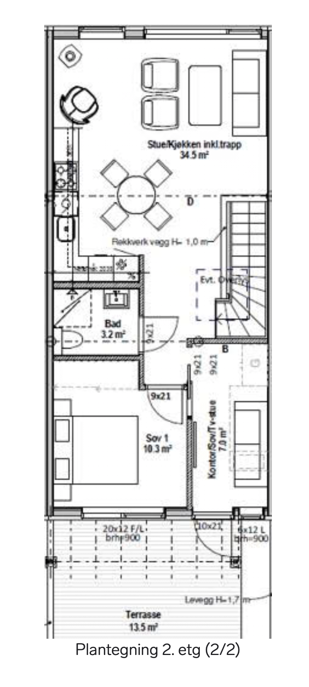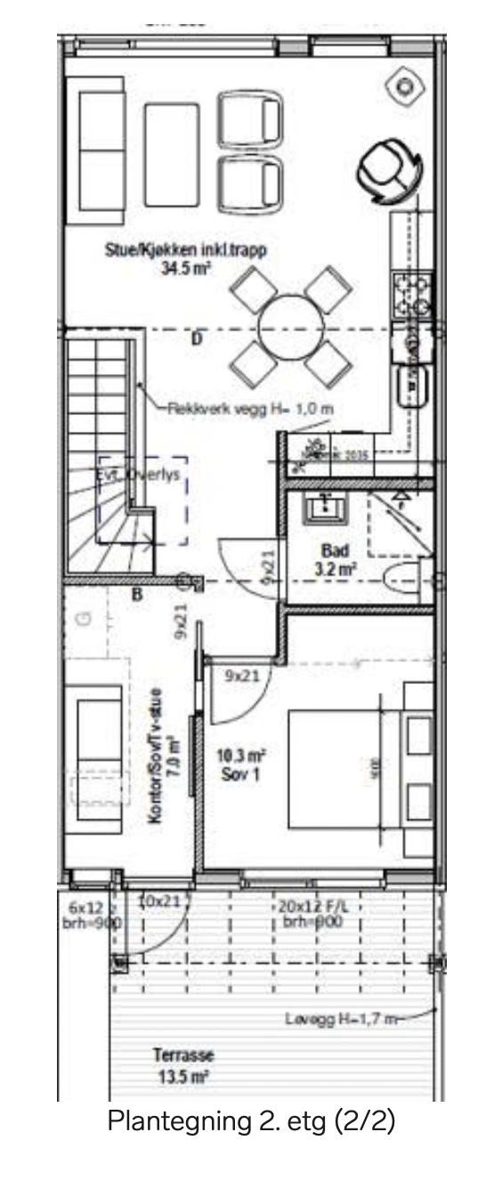 • Åpen stue/kjøkkenløsning