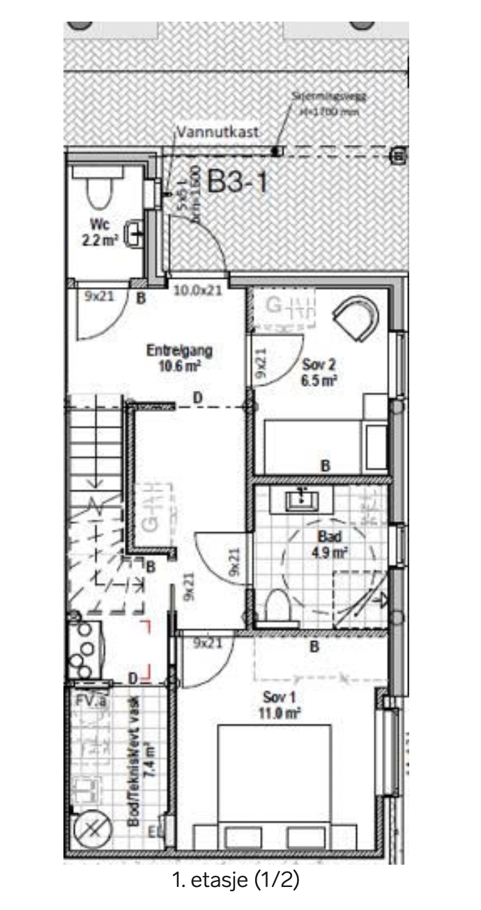Boligene går over to etasjer og har lyse oppholdsrom, god planløsning og fleksible muligheter. I hovedetasjen finner du stue/kjøkken i åpen løsning, ett soverom og en TV-stue som enkelt kan brukes som ekstra soverom. Underetasjen rommer flere soverom, bad, separat WC og bod. Det er ulike planløsninger avhengig av plassering – se plantegninger for detaljer.